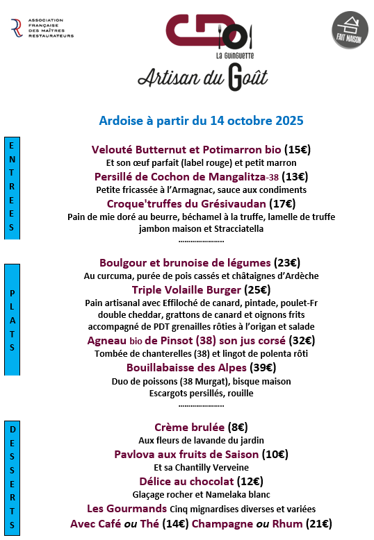 La liste des Maîtres Restaurateurs de l’Isère se trouve sur le site d’Isère tourisme : https://www.isere-tourisme.com/selection/maitres-restaurateurs